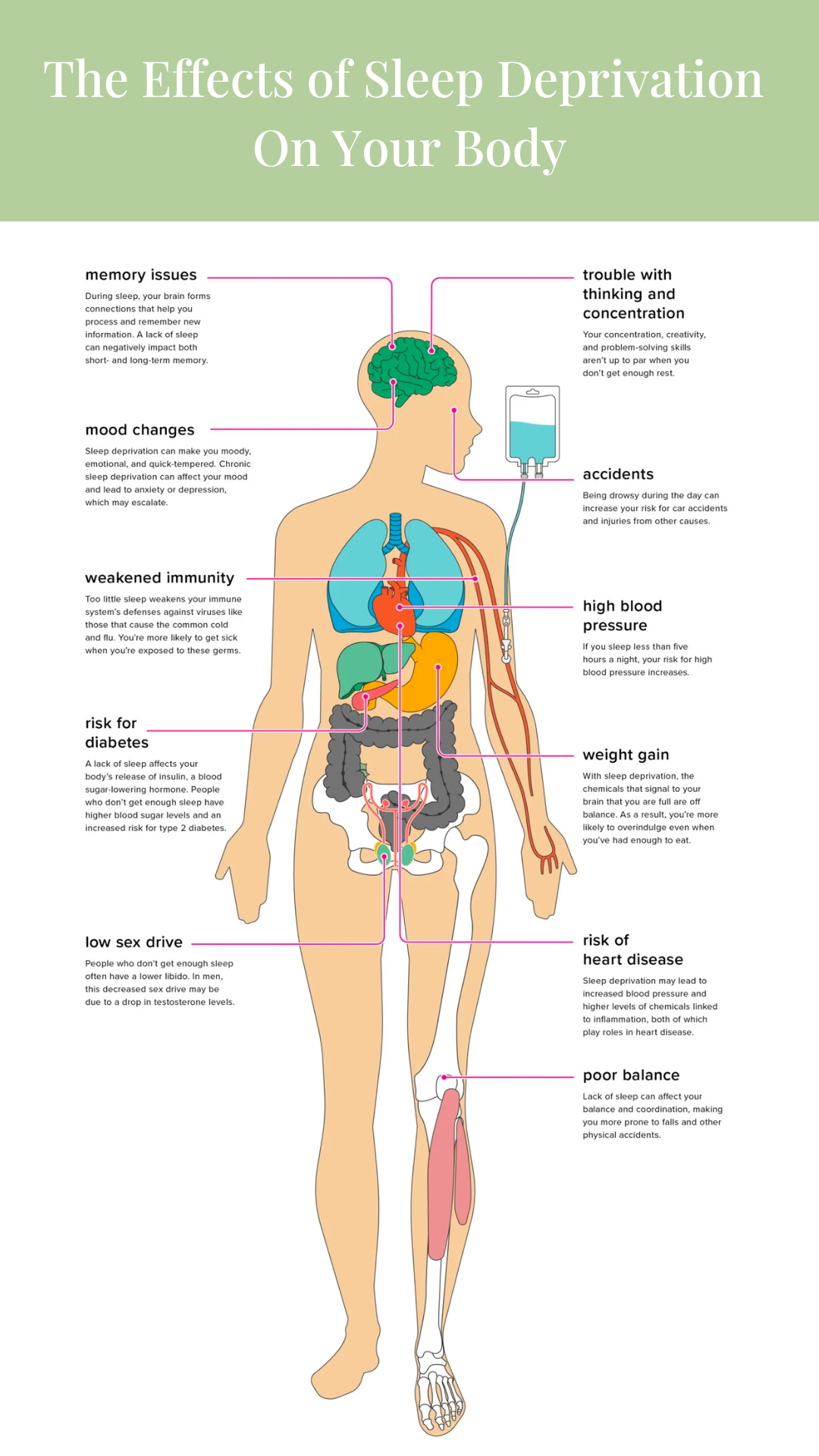 Sleep: If we had to list a top hack, this would be it. Sleep trumps it all. A lack of sleep not only creates blood sugar imbalances, hormonal dysregulation, increases inflammatory markers, and causes a shutdown of your metabolism, but it also contributes to increased hunger and cravings. A lack of sleep has been linked to propagation of up to 7 of the 15 leading causes of death. In science, balance of the body is known as homeostasis, and sleep is the key to restoring it.