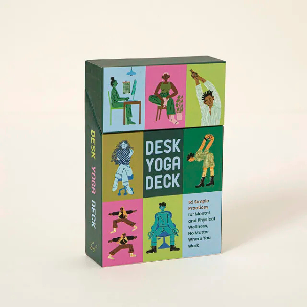A wellness journey isn’t just about what happens at the gym. Even on the days you got your workout in, there’s still a full day of sitting, staring, and slowly losing steam ahead of you. This card deck is for those moments. 52 cards: chair yoga, standing yoga, breathwork, meditation. Each one a two-minute reset you can do without leaving your desk. Toss it on your nightstand, throw it in your bag, pull a card when you need it. Small, colorful, and genuinely useful.