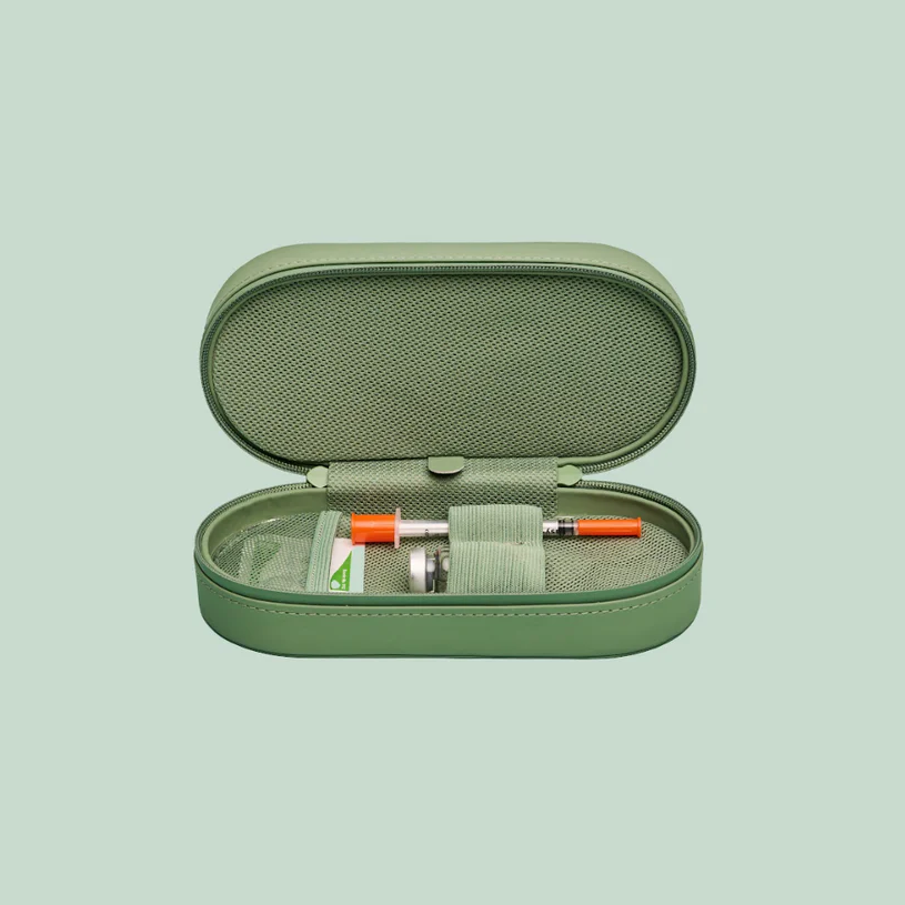 For anyone on injectable medication, GLP-1 treatment, hormone therapy, or other supplements, travel logistics can quietly become a source of stress. The Ivim Travel Case was designed specifically for this. Faux leather, compact enough for any bag, with a reusable ice pack, a mesh pouch for alcohol pads, two storage compartments, and an elastic strap that keeps everything secure. It makes the whole thing feel manageable, like your treatment plan is something you carry with intention, not something you’re figuring out at the airport.